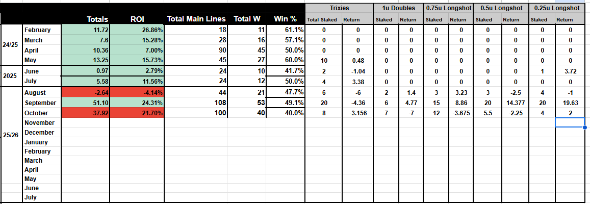 6th November Bookings Model Update October was an absolute nightmare month in terms of results, simply nothing went right. But instead of dwelling on the negativity, I’m going to[…]